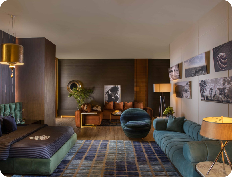 Located at 16th floor , Lodha Belmondo, The Golden Court is a palace-inspired residence that embodies refined luxury through detail, symmetry, and timeless design. Inspired by classical royal aesthetics, the space is enriched with layered gold hues, intricate craftsmanship, and carefully curated finishes.